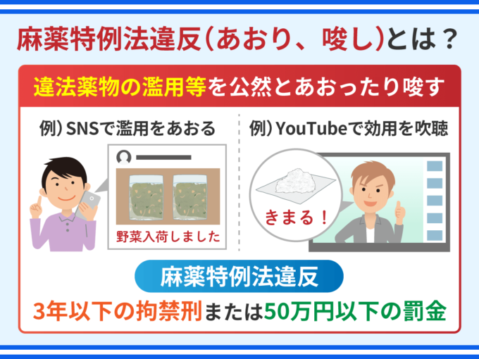 違法薬物の濫用等を公然とあおったり唆したりすると、薬物犯罪を助長することになるため、あおりや唆し自体が犯罪として処罰されるのです。