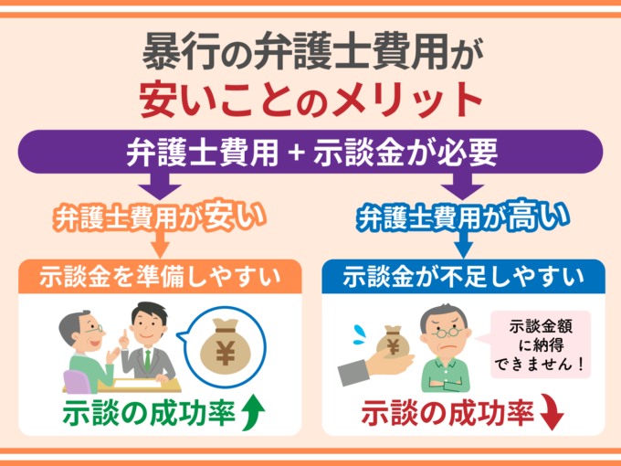 予算に限りがある場合、弁護士費用が安い事務所に依頼した方が、より多くのお金を示談金にあてることができます。