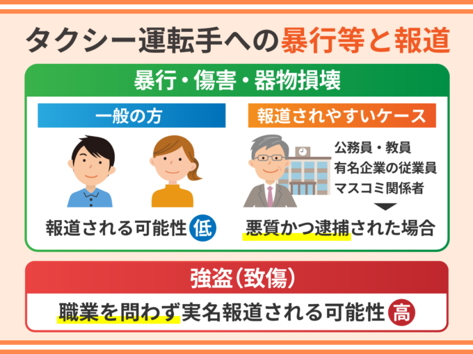 タクシー運転手への暴行等と報道