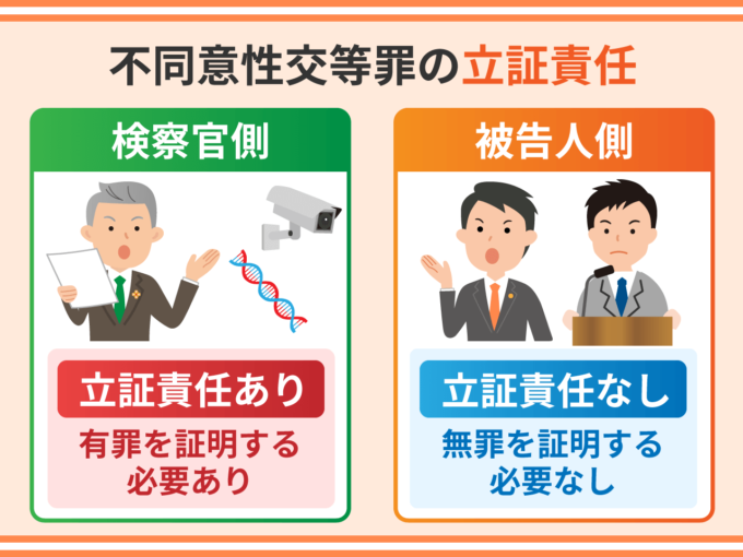 立証の程度としては、検察官は合理的な疑いをいれない程度に有罪であることを立証しなければなりません。これらの点については不同意性交等罪も同様です。