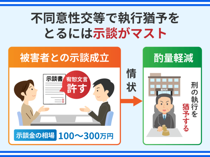 不同意性交等で執行猶予をとる方法は?示談で酌量減軽をめざす!