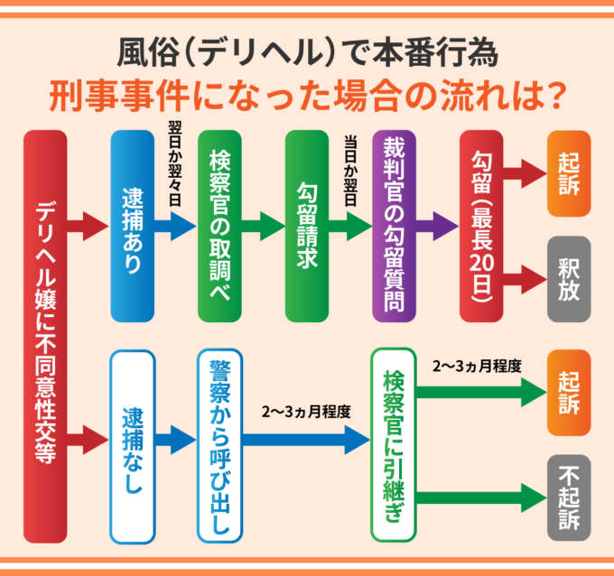 風俗(デリヘル)で本番行為-刑事事件になった場合の流れは?