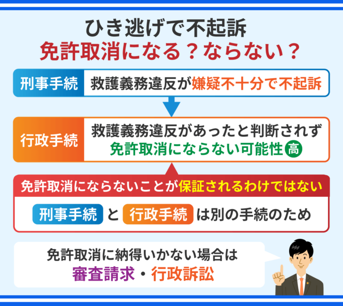 ☑ ひき逃げで不起訴なら免許取消しにならない?