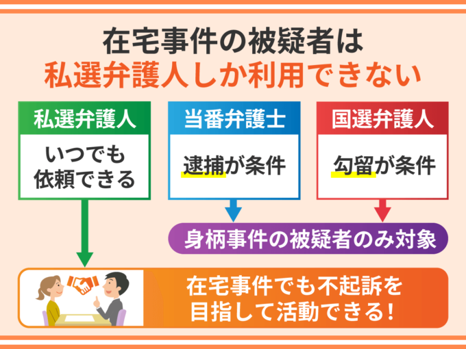在宅事件の被疑者は私選弁護人しか利用できない