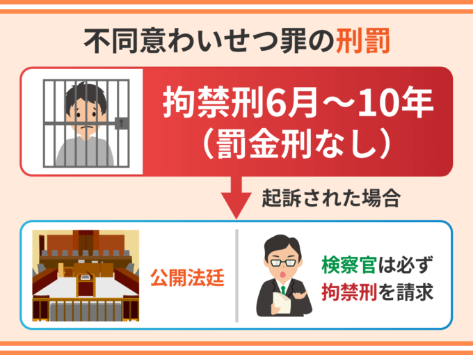 不同意わいせつ罪の刑罰は6か月~10年の拘禁刑です。