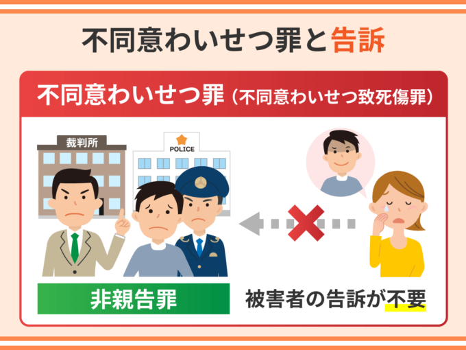 不同意わいせつ罪で起訴するにあたって被害者の告訴は必要とされていません。不同意わいせつ致死傷罪についても告訴は不要とされています。