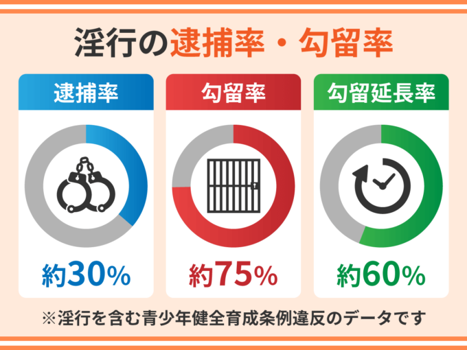 2023年の検察統計年報によれば、淫行を含む青少年健全育成条例違反の逮捕率は25%です。4人に1人が逮捕されていることになります。