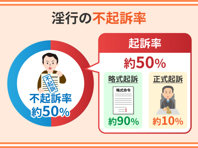2023年の検察統計年報によれば、淫行を含む青少年健全育成条例違反で不起訴になる確率は52%です。起訴された48%のうち略式起訴が86%、正式起訴が14%です。