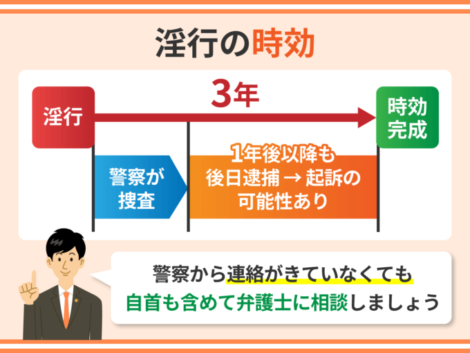 淫行をした場合、1年以上たってから逮捕・起訴されることもあります。淫行の心当たりのある方は、たとえ警察から連絡がきていなくても、自首も含めて弁護士に相談した方がよいでしょう。
