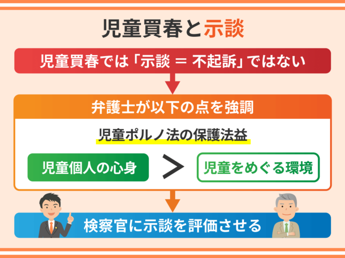 児童買春を禁止している児童ポルノ法は、児童が健全に成長できる環境を保護しています。被害児童と示談をしたからといって、乱された環境が回復するわけではありません。このような理由で、示談を積極的に評価しない検察官がいるのも事実です。