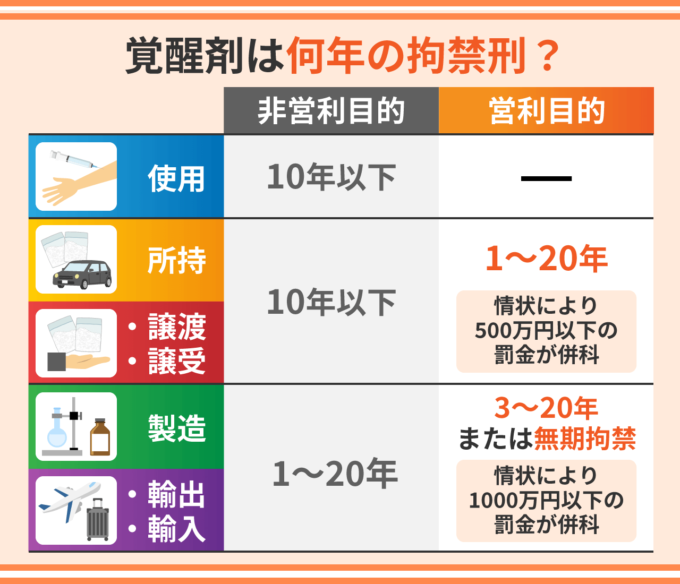 営利目的がある場合は、営利目的がない場合に比べて、利益を得るためにより多くの覚醒剤を流通させ社会に害を与える可能性が高くなるため、罰則も重くなります。