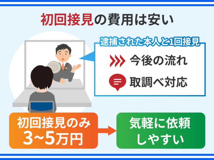 初回接見の料金は3~5万円前後とそこまで高額ではありません。そのため、お金のことを気にせずに気軽に依頼できるというメリットがあります。