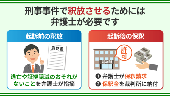 弁護士が起訴前から準備を進め、起訴後速やかに保釈請求を行います。
