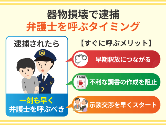 器物損壊で逮捕されたら、できるだけ早く弁護士を呼ぶべきです。