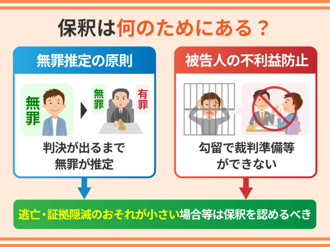 なぜ保釈という制度があるのでしょうか?その理由は以下の2つです。