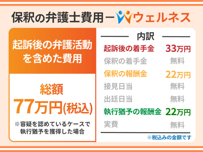 ウェルネスの起訴後の弁護士費用は総額77万円(税込)です。内訳は以下となります。