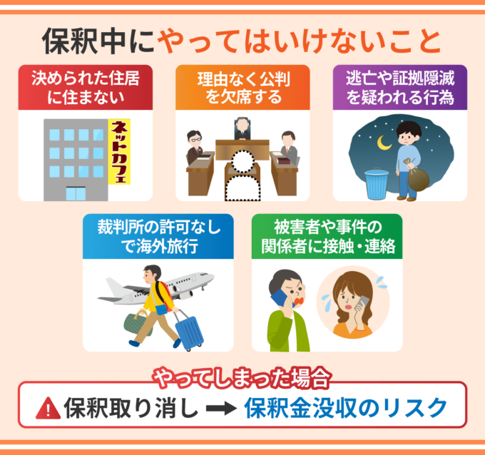 保釈中にやってはいけないこと