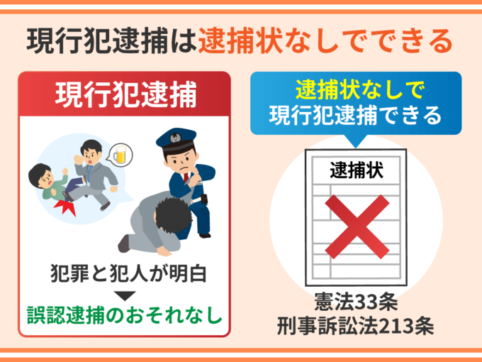 そのため、憲法でも現行犯逮捕については令状が不要とされています