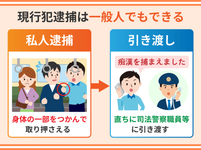 現行犯逮捕は要件を満たしていれば誰でもすることができます。
