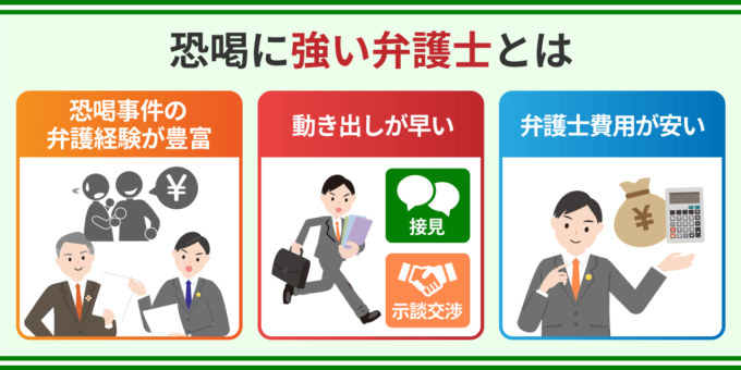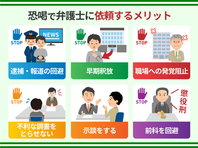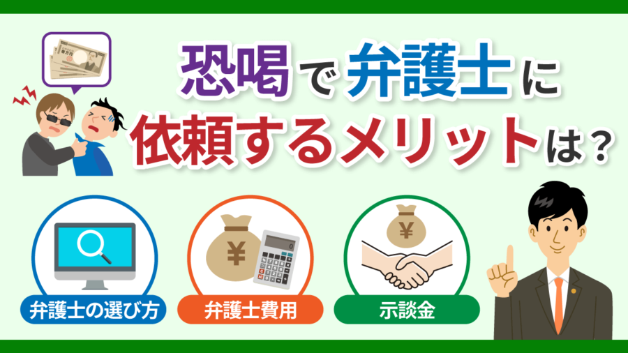 - > 恐喝で弁護士に依頼するメリットは?選び方や弁護士費用・示談金も解説