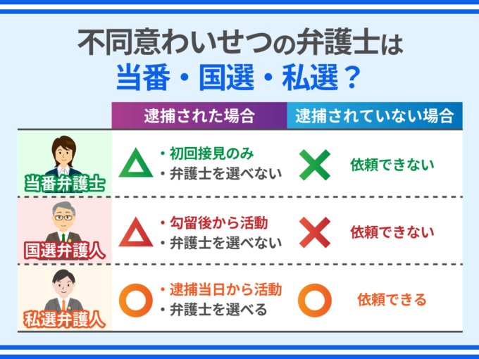 - 不同意わいせつの弁護士は当番?国選?私選?