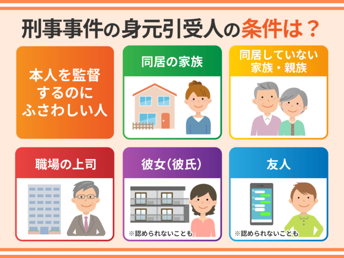 刑事事件の身元引受人になれる条件については、法律で決められているわけではありません。ただ、誰でもなれるわけではなく、本人を監督するのにふさわしい人が身元引受人になります。具体的にみていきましょう。