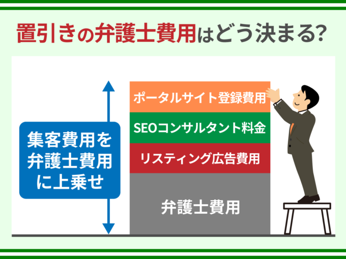 法律事務所が支払うこれらの費用は、最終的には弁護士費用に上乗せされ、依頼者から回収されることになります。そのため、ネット集客にお金をかければかけるほど、置引きの弁護士費用も高くなります。