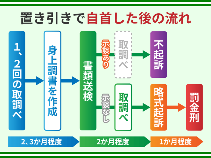 自首してからおおむね2,3か月後に捜査資料が検察官に引き継がれます(書類送検)。