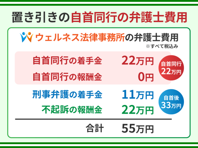 ウェルネスの弁護士が置き引きの自首に同行する費用は22万円(税込)です。