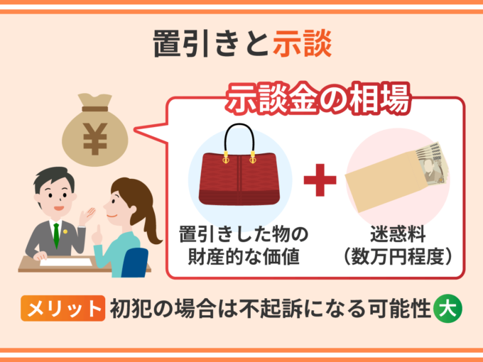 置引きは万引きに比べて被害感情がそこまで厳しくないことが多く、弁護士が適切に交渉すれば、妥当な金額で示談がまとまることが多いです。