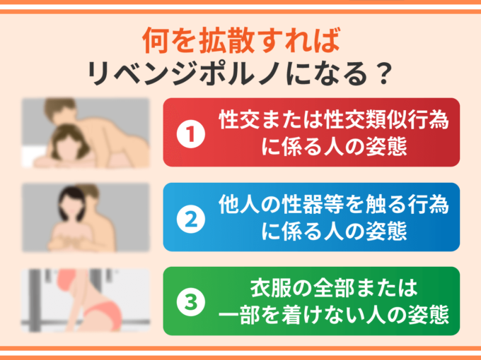 リベンジポルノ防止法が取締りの対象にしているのは次の3つの姿態が撮影された画像です。