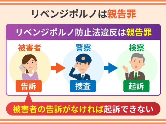 リベンジポルノ防止法違反は親告罪です。親告罪とは、被害者の告訴がなければ起訴できない犯罪のことです。