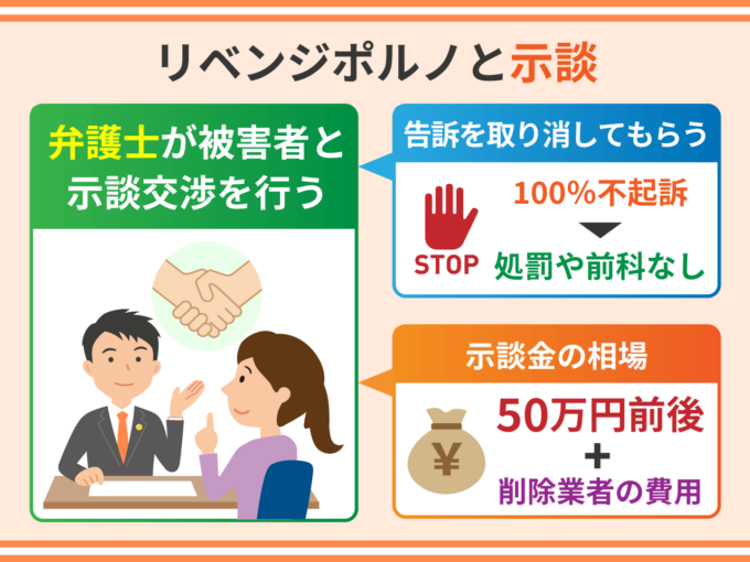 リベンジポルノは被害者の告訴がなければ起訴できない親告罪です。そのため、被害者と示談をして告訴を取り消してもらえれば、確実に不起訴になります。