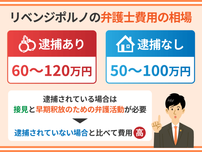 リベンジポルノで逮捕された場合の弁護士費用の相場は、60万円~120万円です。接見費用や釈放のための弁護活動の費用も含まれます。