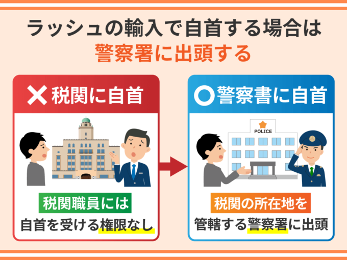 ラッシュの輸入で自首する場合は警察署に出頭する