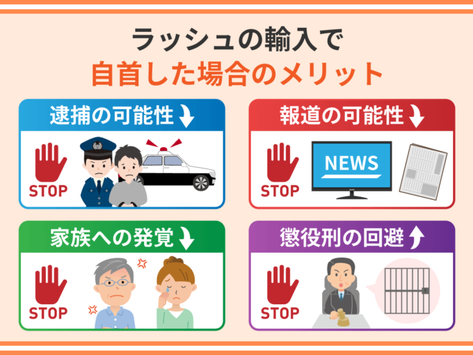 ラッシュの輸入で自首することのメリットは逮捕される可能性が低くなるということです。