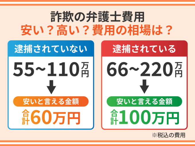 詐欺の弁護士費用の相場をふまえると、逮捕されていないケースで合計60万円、逮捕されているケースで合計100万円程度の弁護士費用であれば十分に安いといえるでしょう。