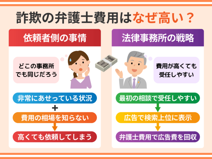 弁護士費用が高くなる理由として、依頼者側の事情と法律事務所の戦略の2つがあります。