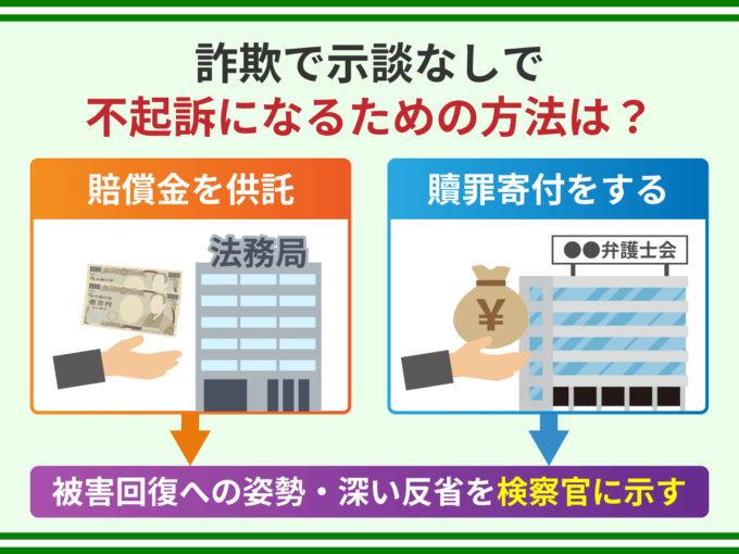 詐欺罪は、被害者をだまして財産的な損害を与える犯罪ですので、不起訴になるためには、示談という形で損害を賠償し被害者の許しを得ることが必要になるのです。