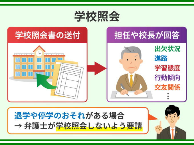 そのようなケースでは、弁護士が調査官に学校照会をしないよう要請します。