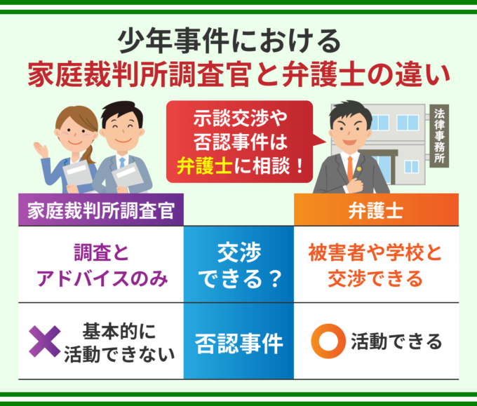 少年事件における家庭裁判所調査官と弁護士の違い