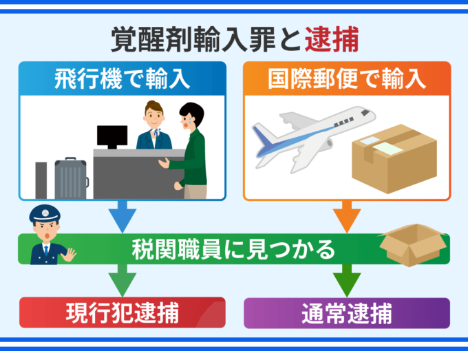 飛行機で覚醒剤を日本に輸入する場合、最初に覚醒剤を発見するのは税関職員になります。税関職員に覚醒剤を発見されると逮捕される可能性が高いです。輸入の手口によって、現行犯逮捕されるケースと後日に通常逮捕されるケースがあります。