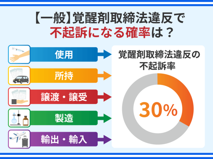 覚醒剤輸入罪を含む全ての覚醒剤取締法違反の不起訴率は30%です。