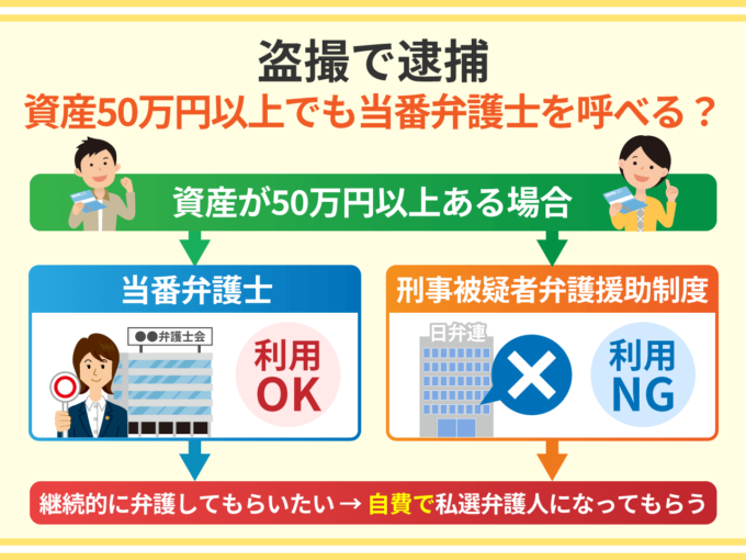 盗撮で逮捕-資産50万円以上でも当番弁護士を呼べる?