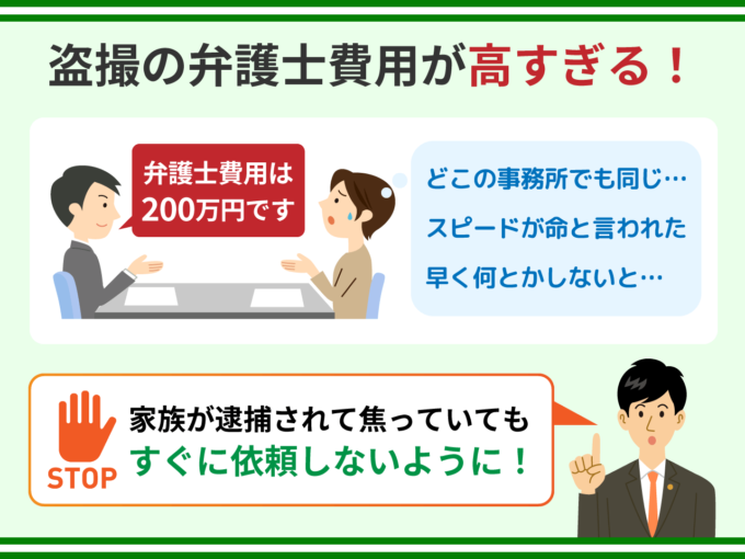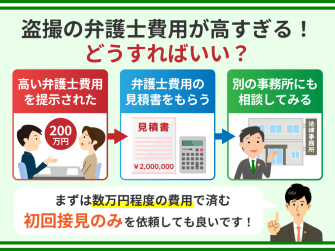 盗撮について相談した弁護士から、びっくりする程高い弁護士費用を提示されたらどうすればよいでしょうか?
